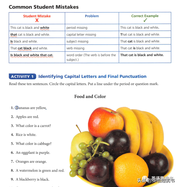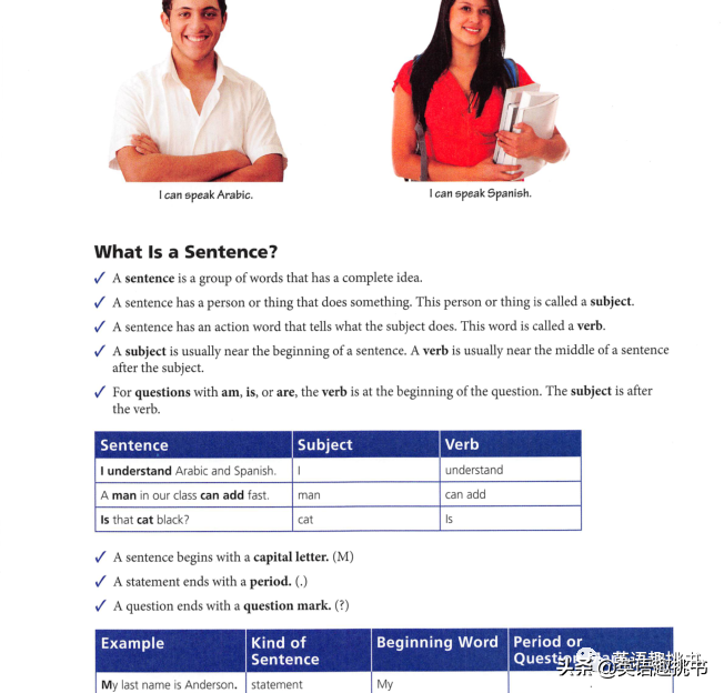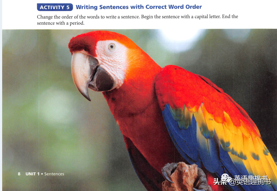 第一单元把句子进行分解,将主谓宾、字母大小写、标点符号进行描述之后,