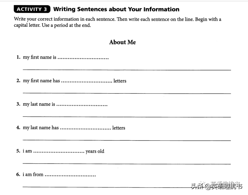 即便是最简单的句子,学习者也是需要原创写作的。比如一单元有关个人信息的写作。