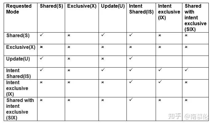 鉴于一致性的种类很多,这里就说强一致性。为了提升数据库的性能,往往采用多线程进行实现。而为了保证强一致性,在读写操作里面就需要加锁。当然,最简单的方法是给整个数据库加一个互斥锁——这样正确性保证了,性能却不行了。于是就有考虑更细粒度的加锁。数据库中B+树如此重要,除了读写上有优势之外,更重要的原因是它加锁很方便——当然了,方便只是相对而言的,真正实现起来非常繁琐——如果你已经上了系统课就应该了解,一旦牵涉到锁,问题就多了:死锁、活锁、饥饿……这些都是需要考虑的问题,当这个问题被抽象出来之后,就有了下面这张表: