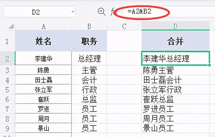 顾名思义,连接符就是将两个内容连接到一起,比如A&B=AB。连接符使用率很高,比如下面操作中的合并单元格内容功能。