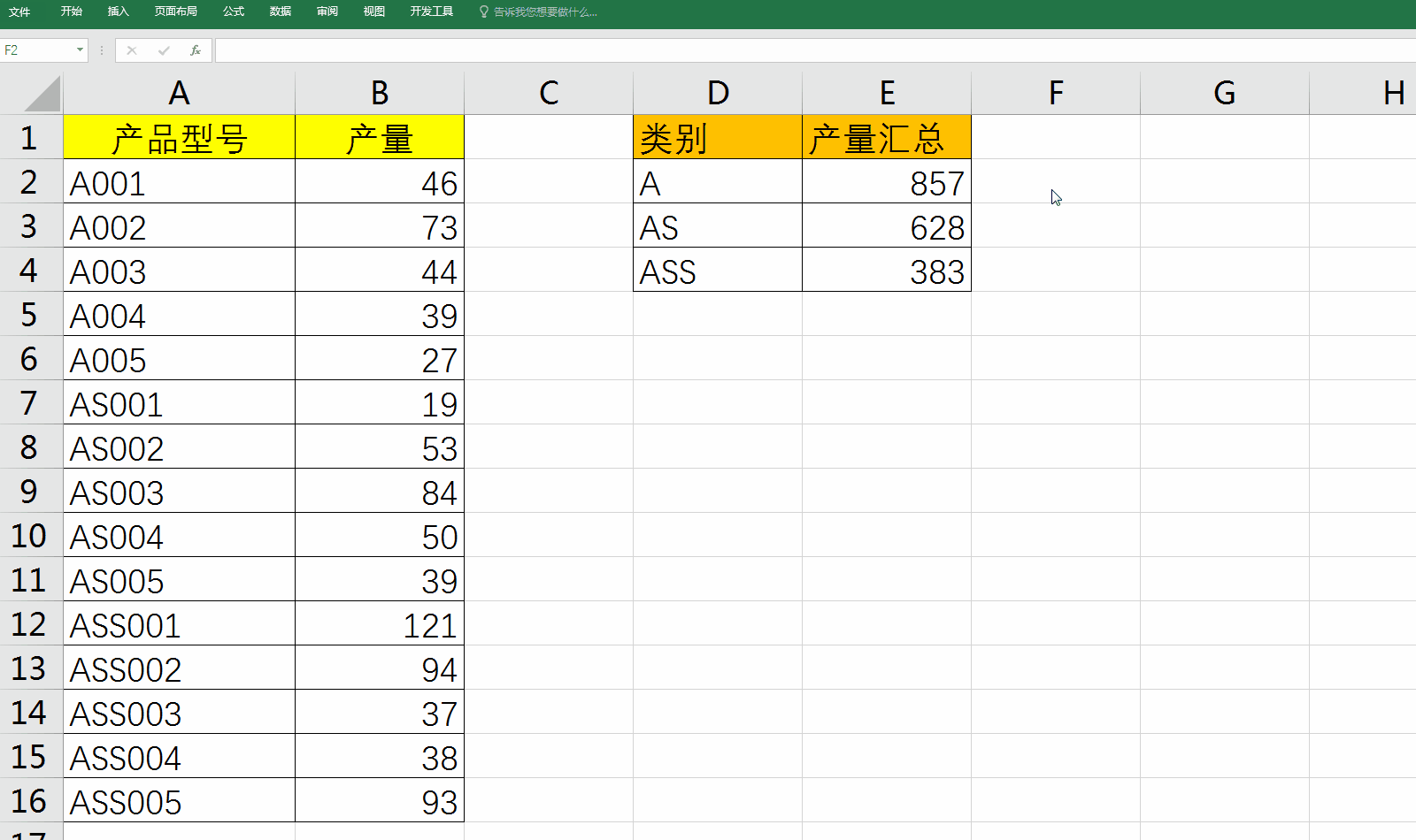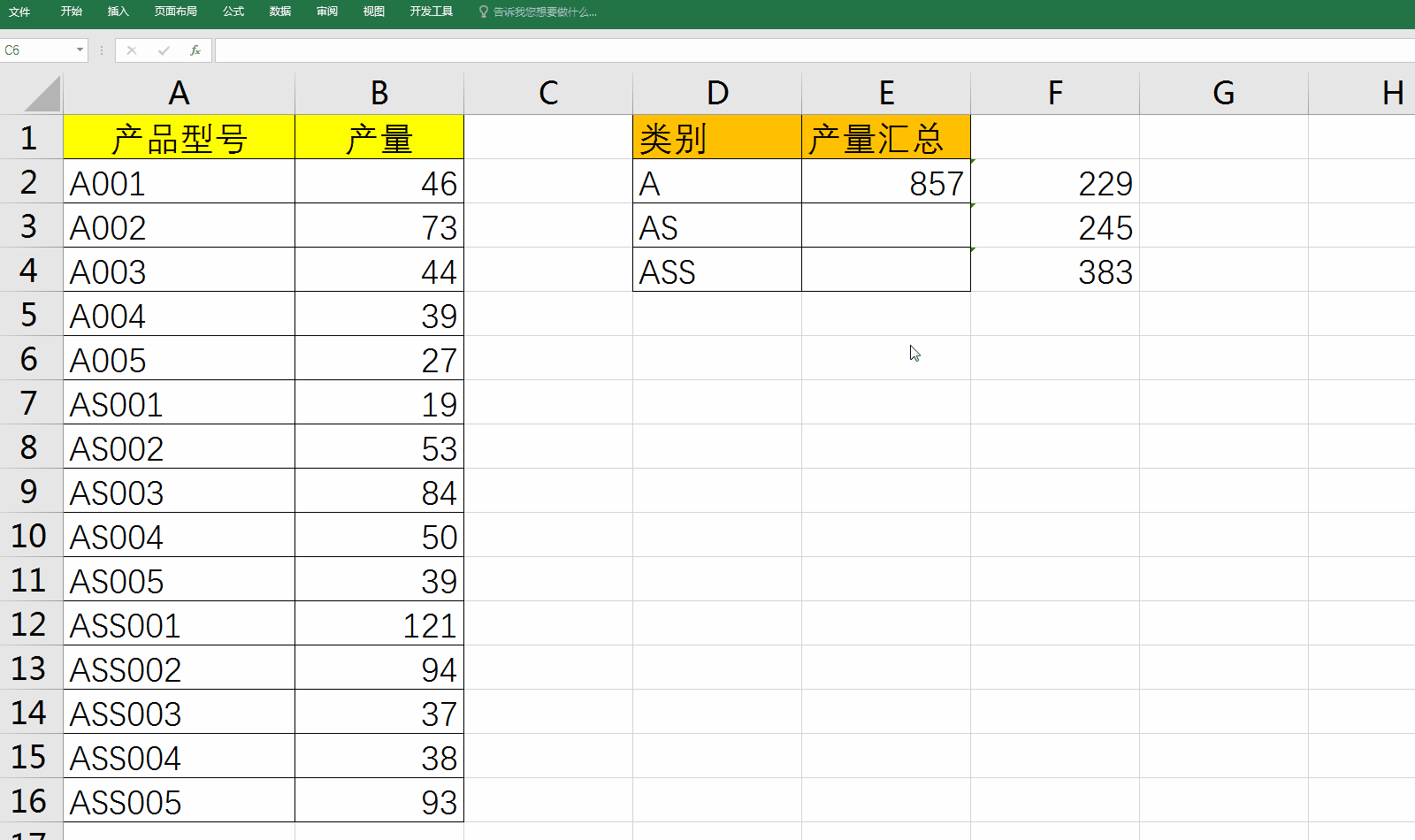 感觉和前面那个电器销量表格相似,这里是求产品汇总。我们操作一下。