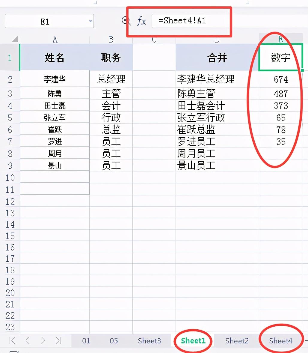 表示跨表引用。比如下图所示:在Sheet1表格中引用Sheet4中A列单元格的内容
