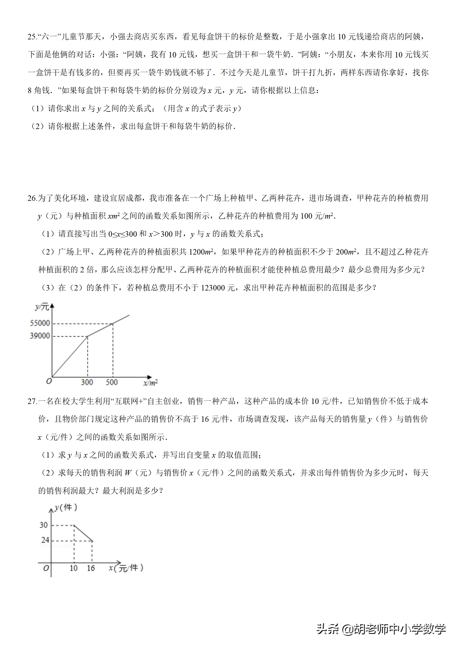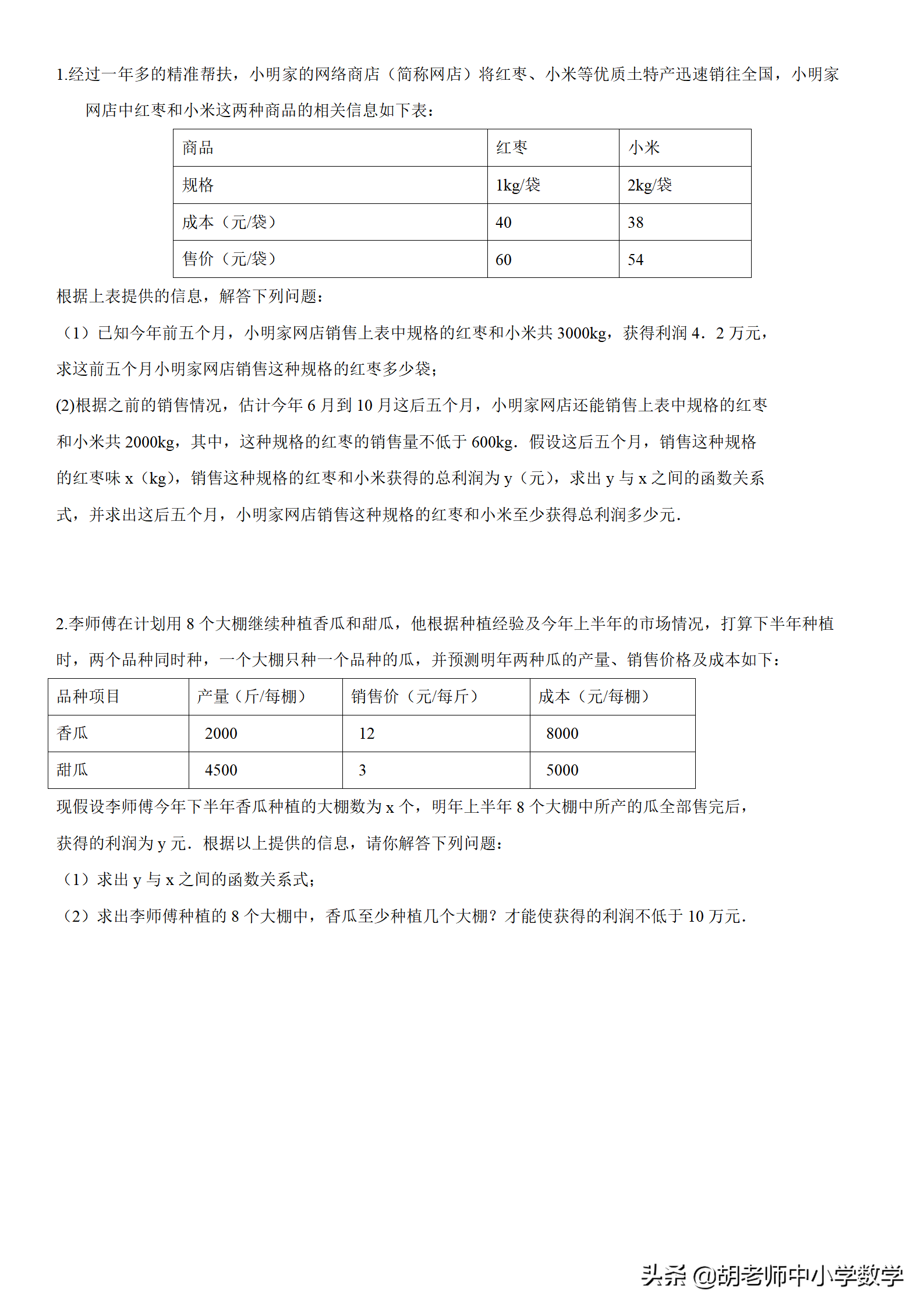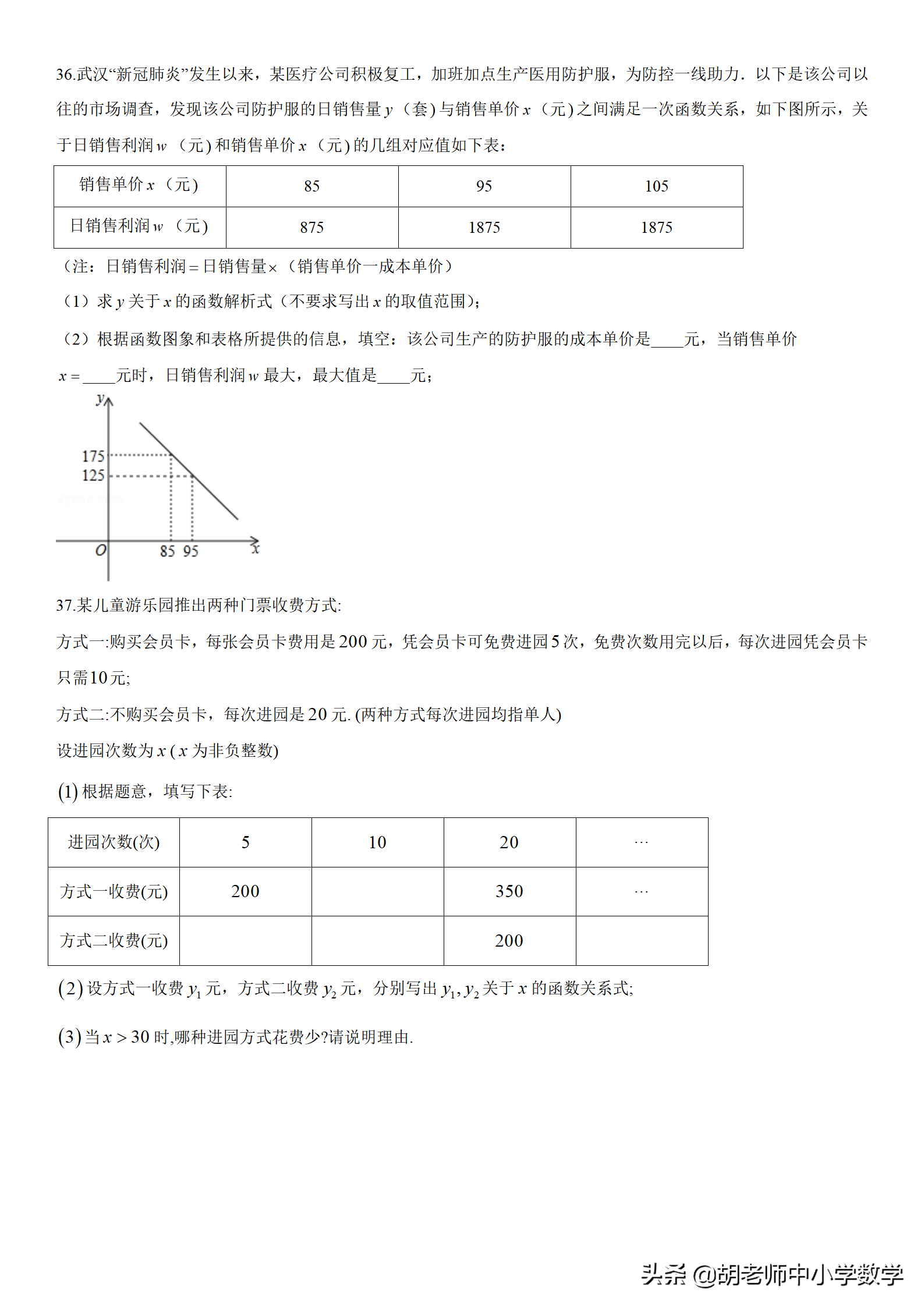 第一问一般是求函数关系式,第二问通常是根据函数关系式解决一些问题,包括方案选择、计算等。
