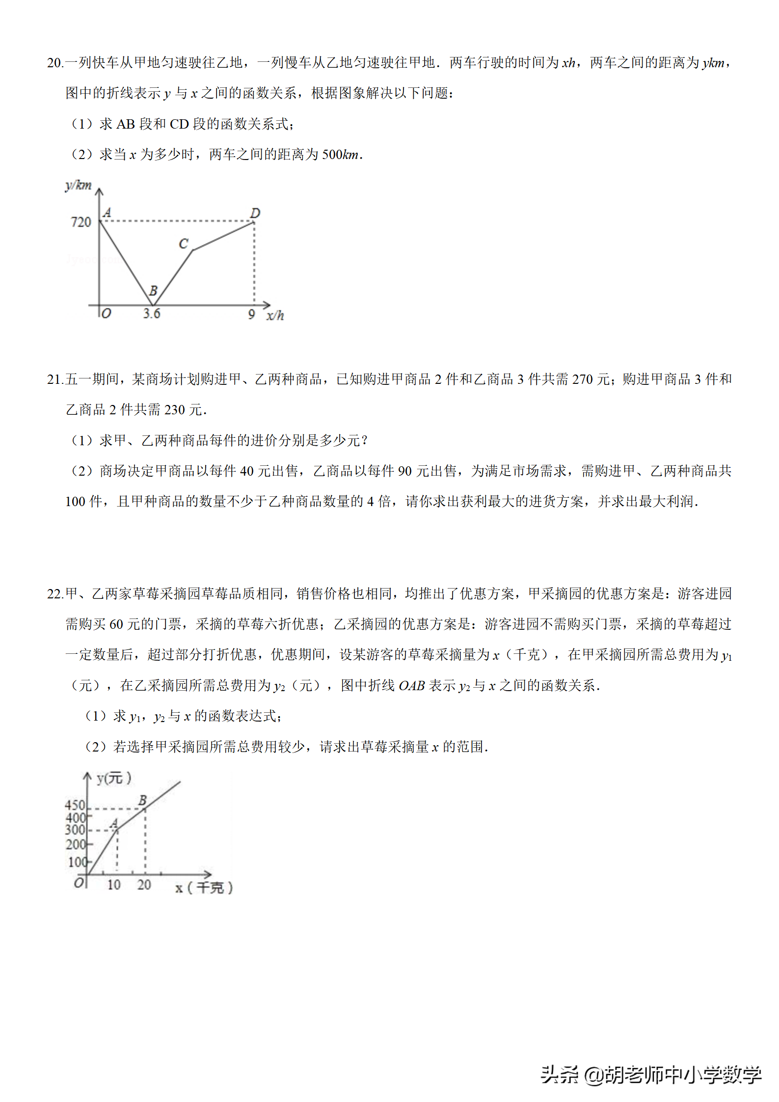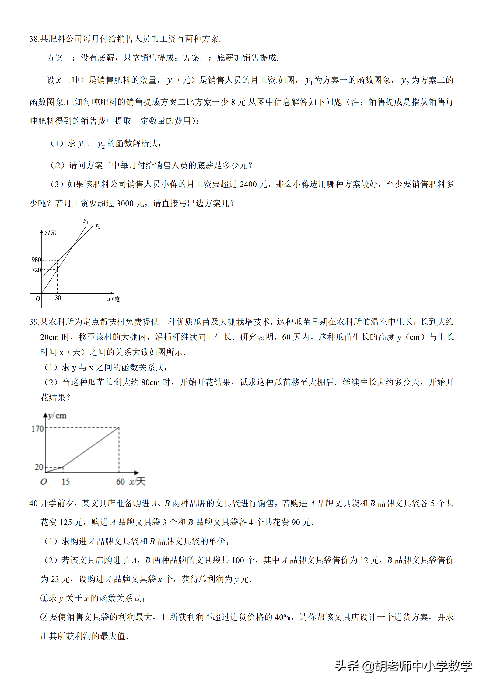 中考数学一次函数的应用,主要就这三大类型,方法总结+例题解析