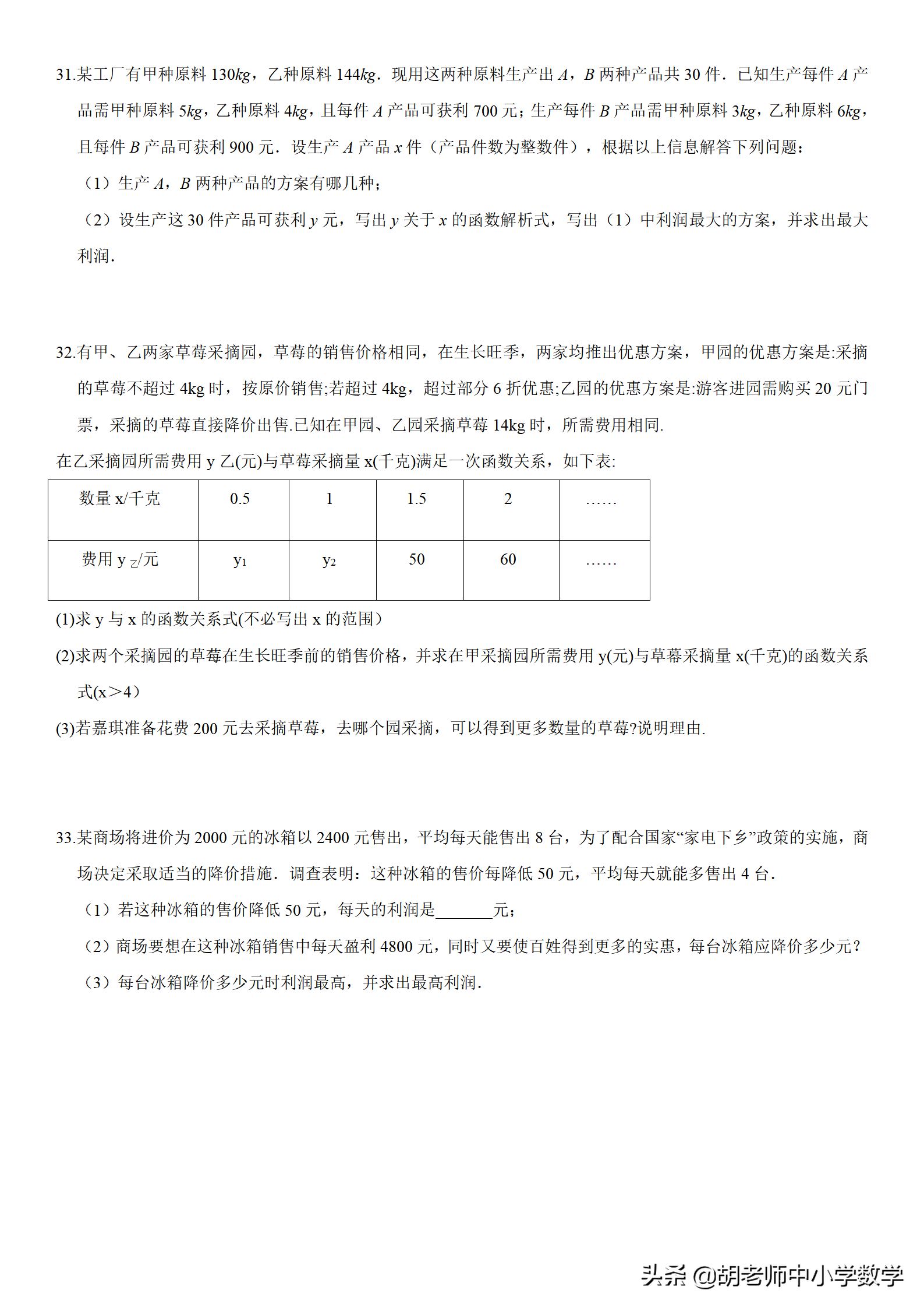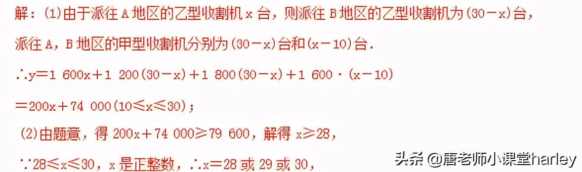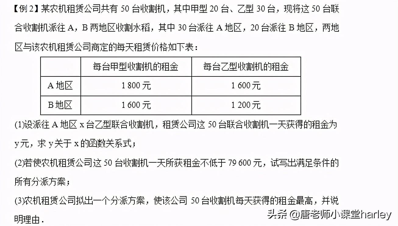 集中在题目中的表格信息,建议一次函数的模型,结合不等式进行解题,与一般的简答题不同,在应用题中要多关注一次函数中自变量的取值范围,必须符合题目的实际要求。这也是很多同学丢分的原因所在。