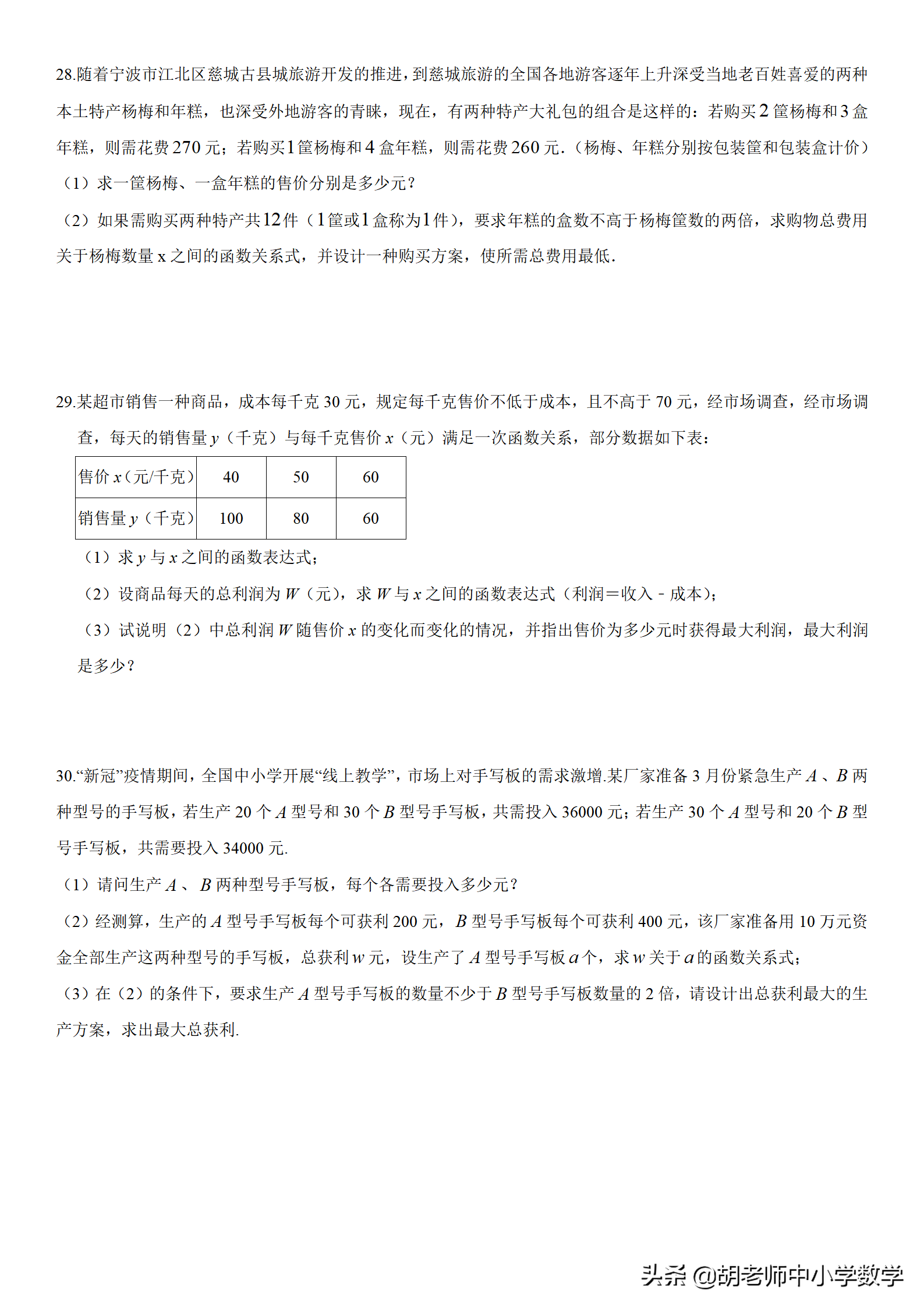 一次函数的应用 解答题1.杨大嫂在政府的再就业中心的扶持下,...[最佳回答]个月内每天买进该种晚报的份数100150当月利润(单位:元)300390y=x+240当x=200份时Y最大=440元个月内每天买进该种晚报的份数100150当月...