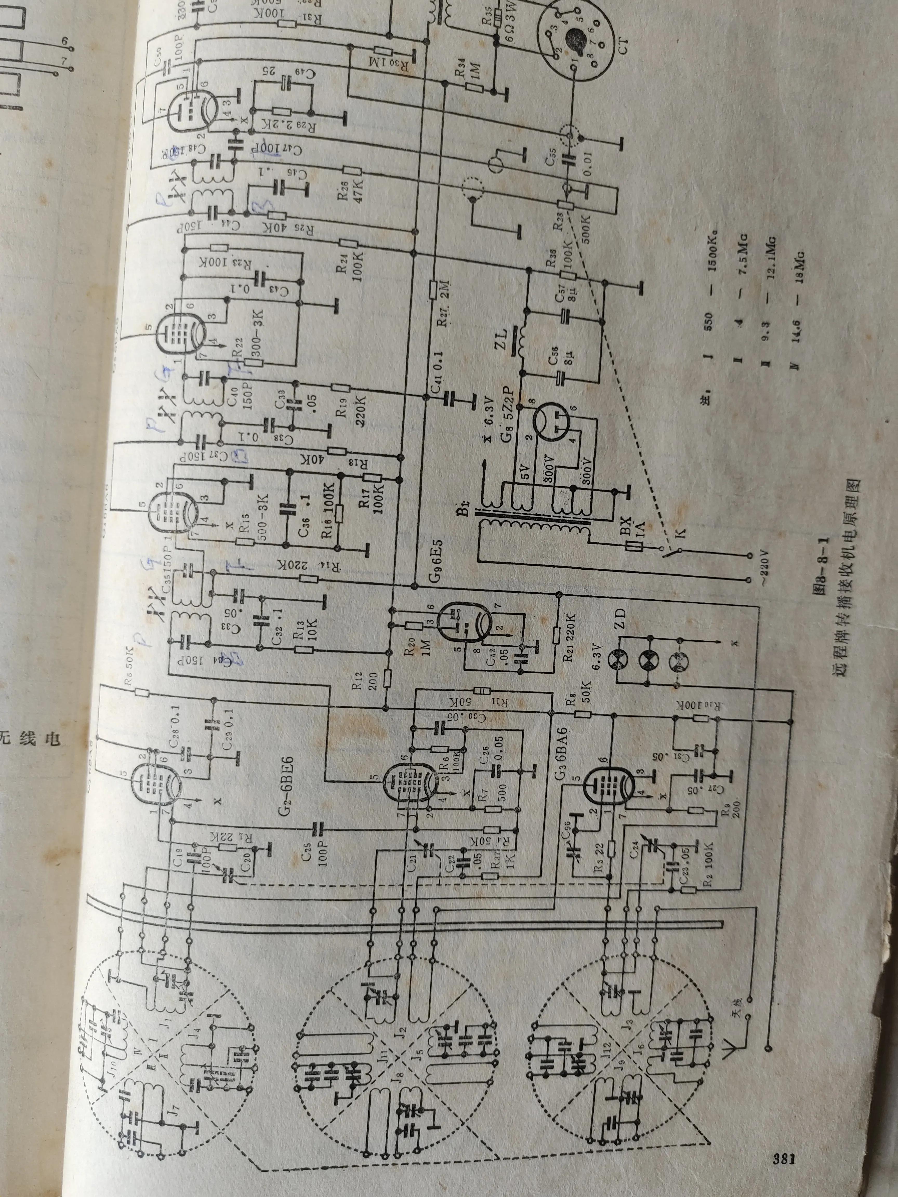 检波兼自动增益控制用6SQ7(6G2P,6G2)。调谐指示用6E1美观,但完全可用6E2,6E5等代用。
