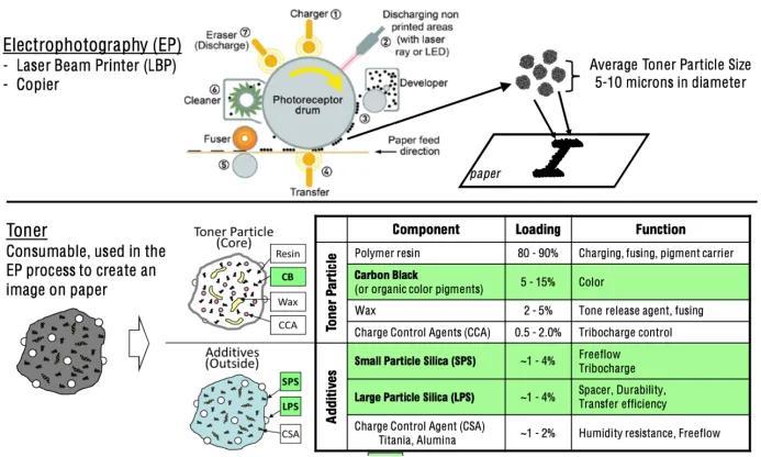 卡博特二氧化硅对于墨粉行业作用机理过程: