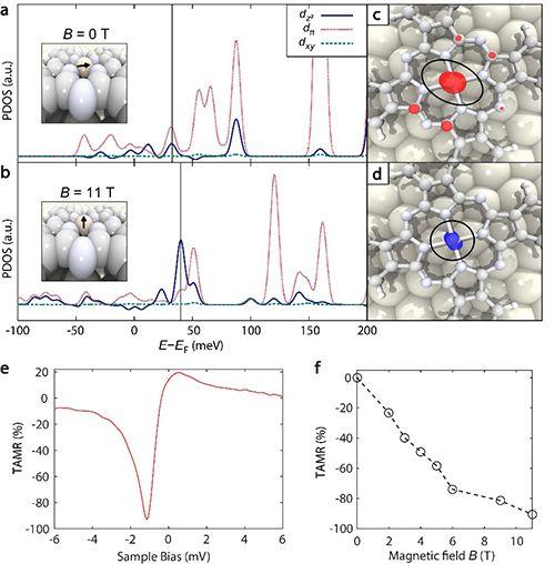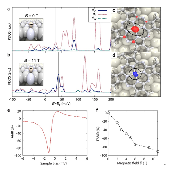 图4. 利用磁场调制单个酞菁铁分子的巨磁阻效应。