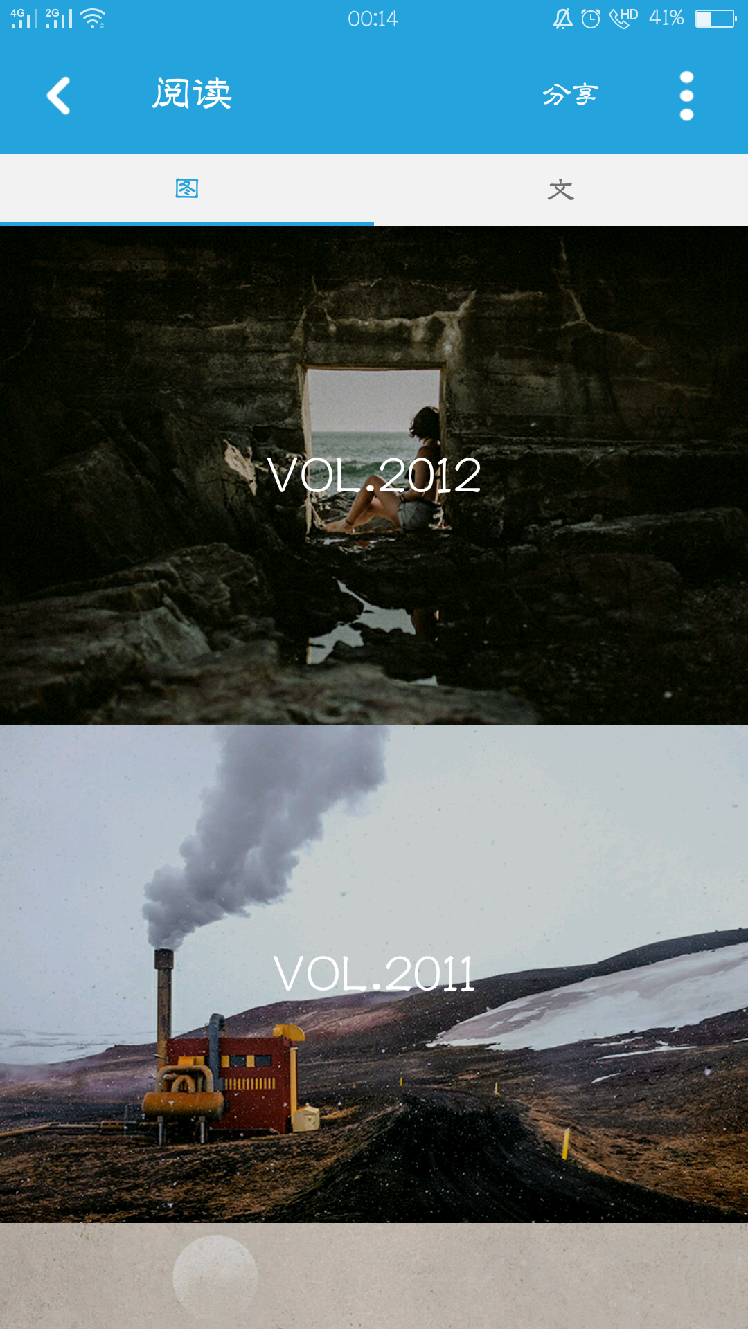我就特别喜欢里面的「阅读」区,每一张图片都美轮美奂,拿来做屏保也非常不错呢。除了图片,还有一些文章,文章来自大多数知名作家的代表作,像莫言、顾城、张小娴等。除了阅读之外,还有一些白噪音,里面是一自然的音效,当你看图、看书累时,不妨来一首田间歌曲,相信你一定会心旷神怡。