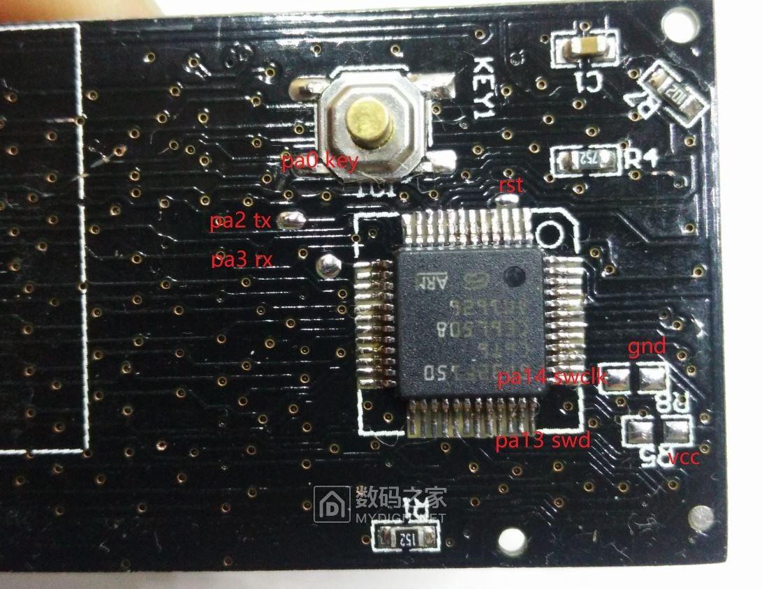 其中PA13/PA14用于下载程序,还引出了一个串口