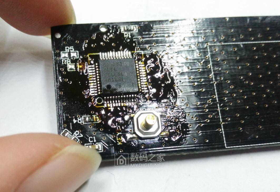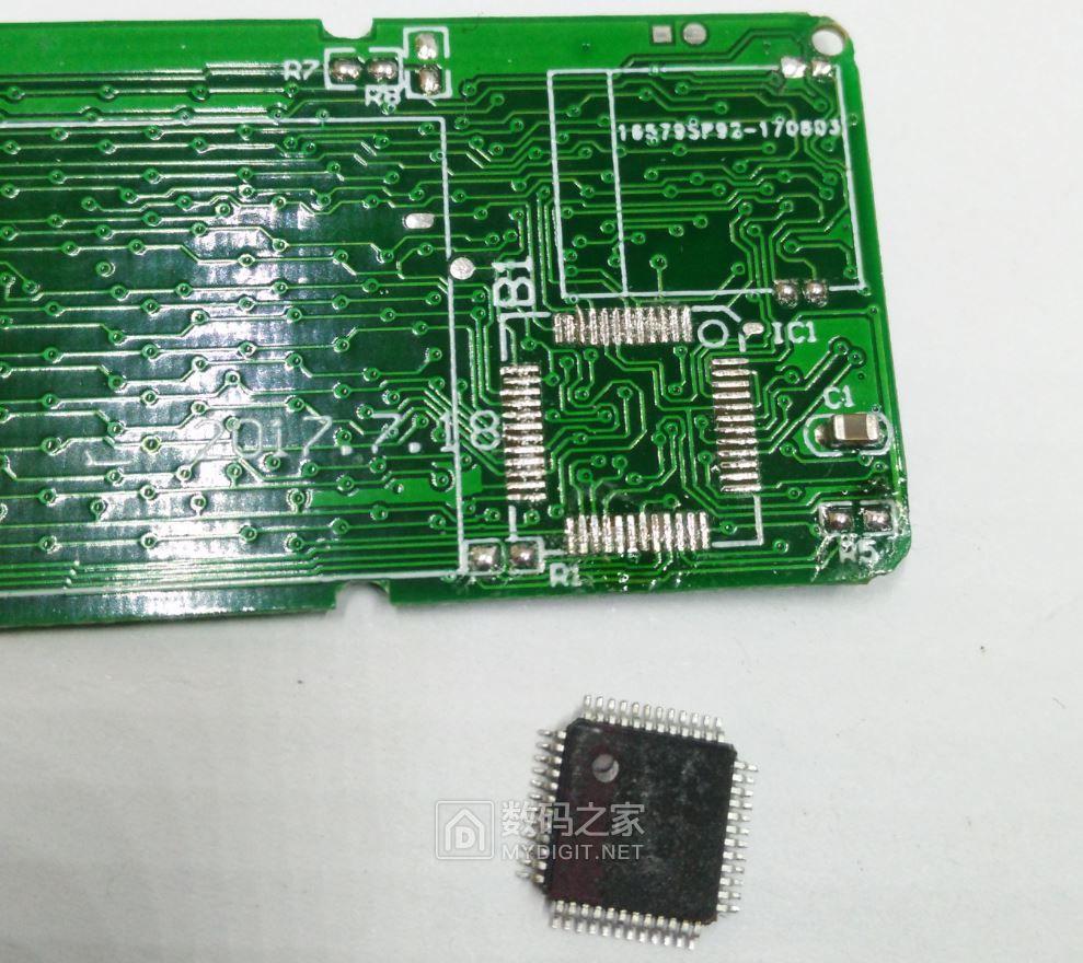 开始跑走线。这里也比较蛋疼。虽然这个板子是绿油,走线很容易看清楚。但是这个板子过孔盖油盖的太严实了,只能刮开走线才能方便测量了