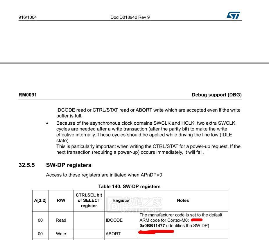 写的明明白白,CORTEX M0 内核的swd id规定就是0x0BB01477