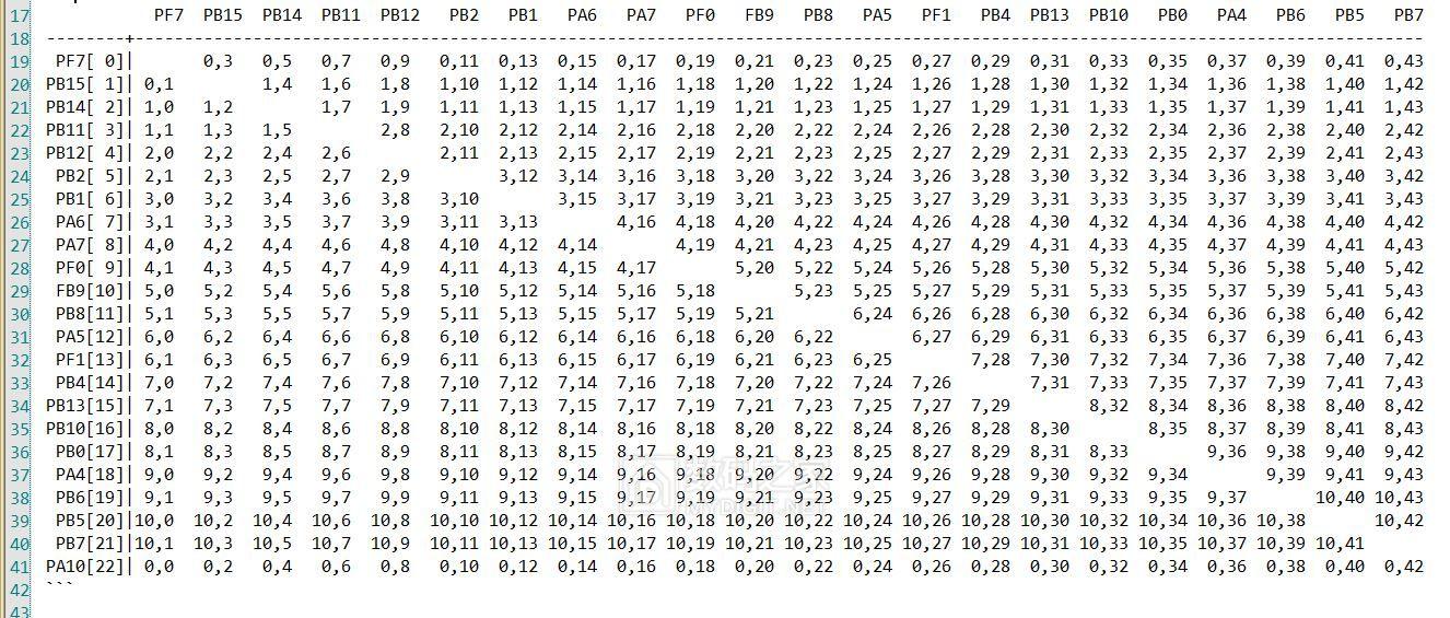 uint32_t Led_GPIO_Port_Arrange[22] = {GPIOF, GPIOB, GPIOB, GPIOB, GPIOB,