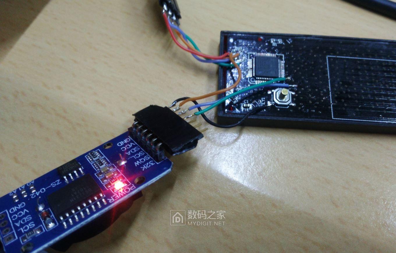 因为是实验,就先用模块测试了,实际上是可以直接芯片飞线的。只需要飞iic的sda和scl,电源线和备用电压就行(电源线和单片机接一起,备用电源直接接在锂电池上)