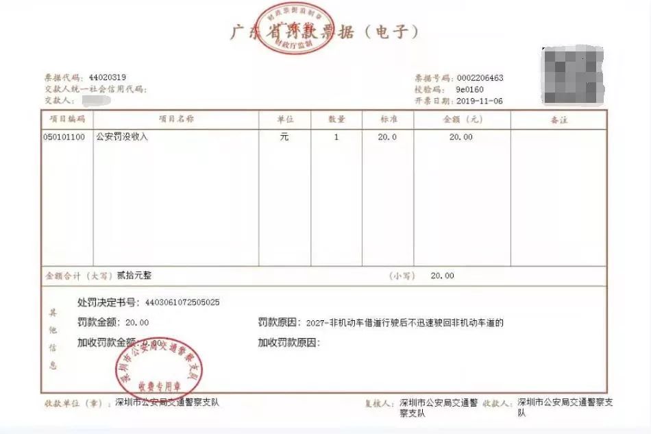 深圳市首张交通罚款区块链财政电子票据