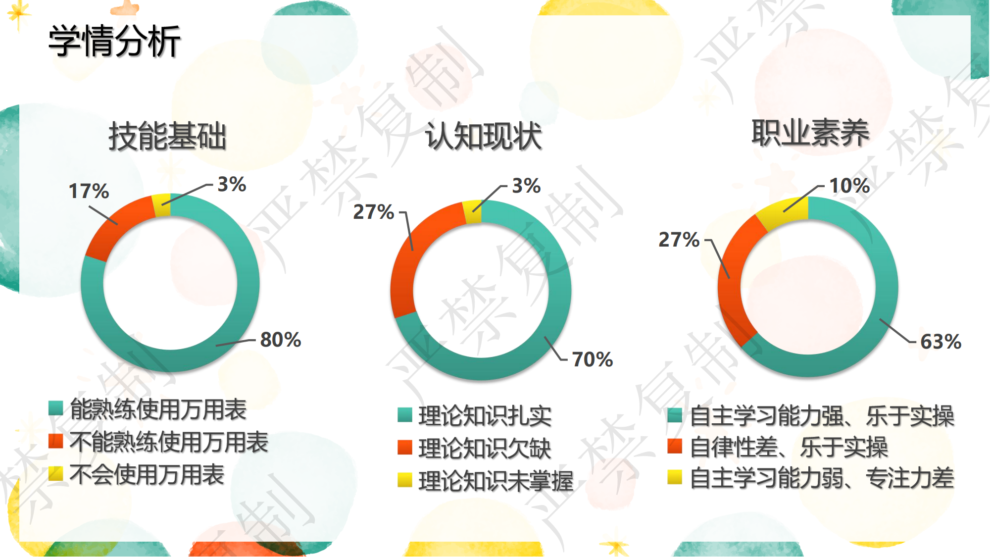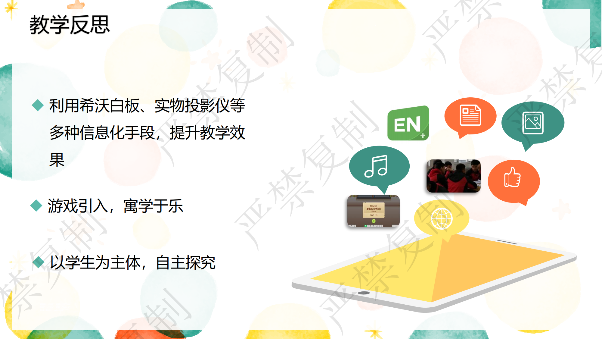 这是我系一名年轻老师说课的PPT,虽然还有不足,但是亮点也很多,主要关注根据信息收集后的学情分析和教学目标。现在的信息化教学手段有很多,从最初的问卷星,到现在的可以利用的在线精品资源课程,如何更合适的应用到课程当中,取得的最好的教学效果,是一个需要深入探讨的问题。实用、适用、合用才是最重要的,秀技式的教学方式终究走不长远。