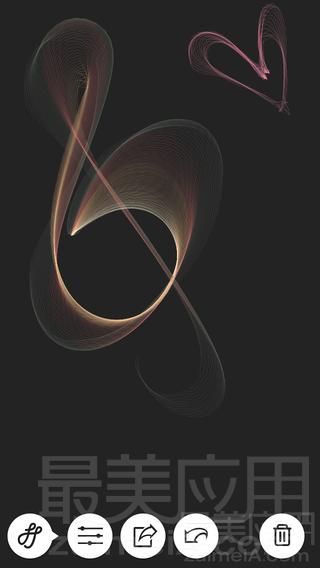 这是一位独立开发者的作品。应用本身也是画板类的 APP,你可以⽤⼿指在屏幕上涂鸦。通过笔划的曲直疏密,就能自动⽣成特有的对称图案。原本只是在画板中随意的滑动,但结果却会惊艳到自己,用不了几分钟的时间,就能创作出一幅幅具有设计感的绘画作品,效果非常赞!同时,绘制过程中,会根据⼿指的位置⽣成相应的⾳乐,从中体验到图形与乐⾳的韵律之美,十分惬意放松。