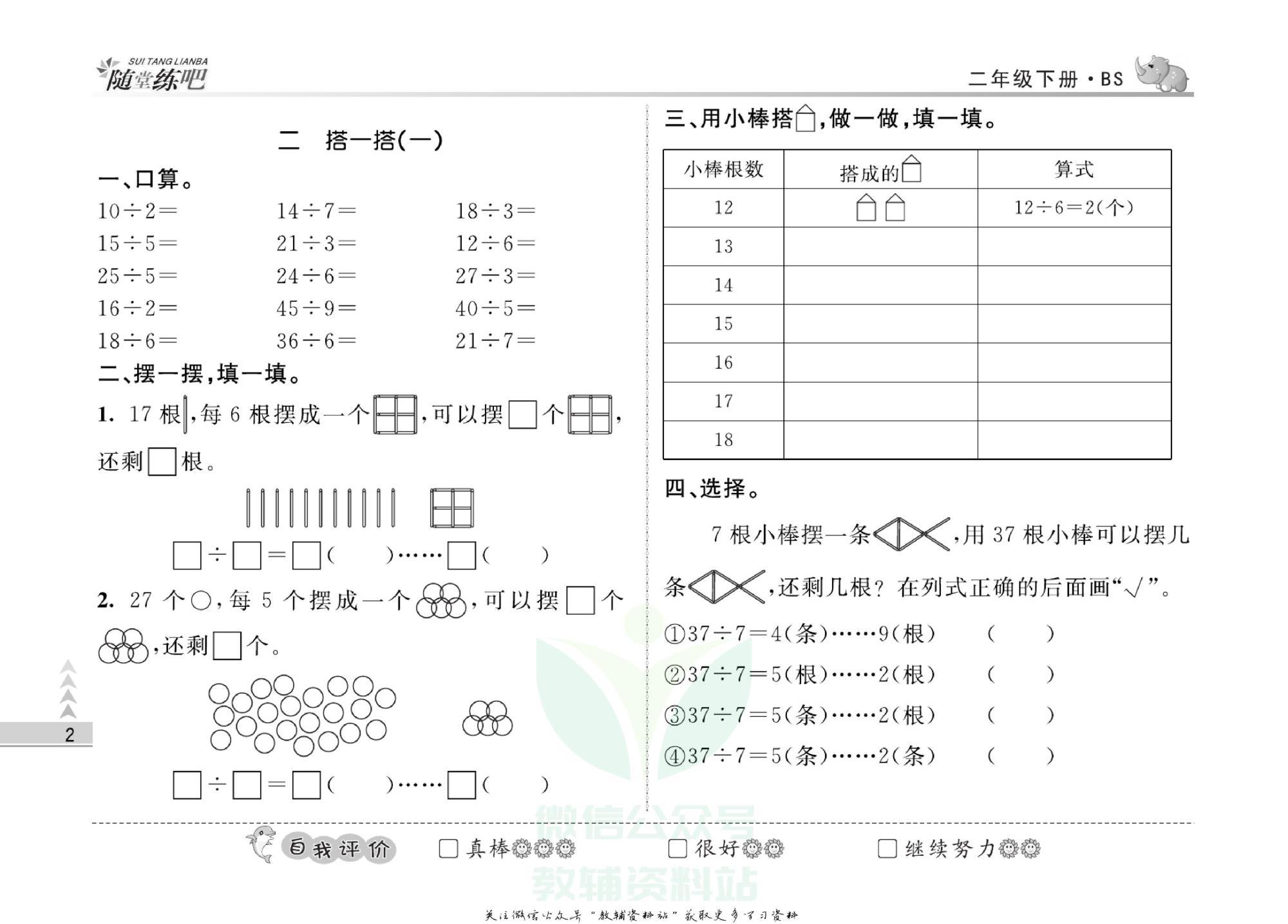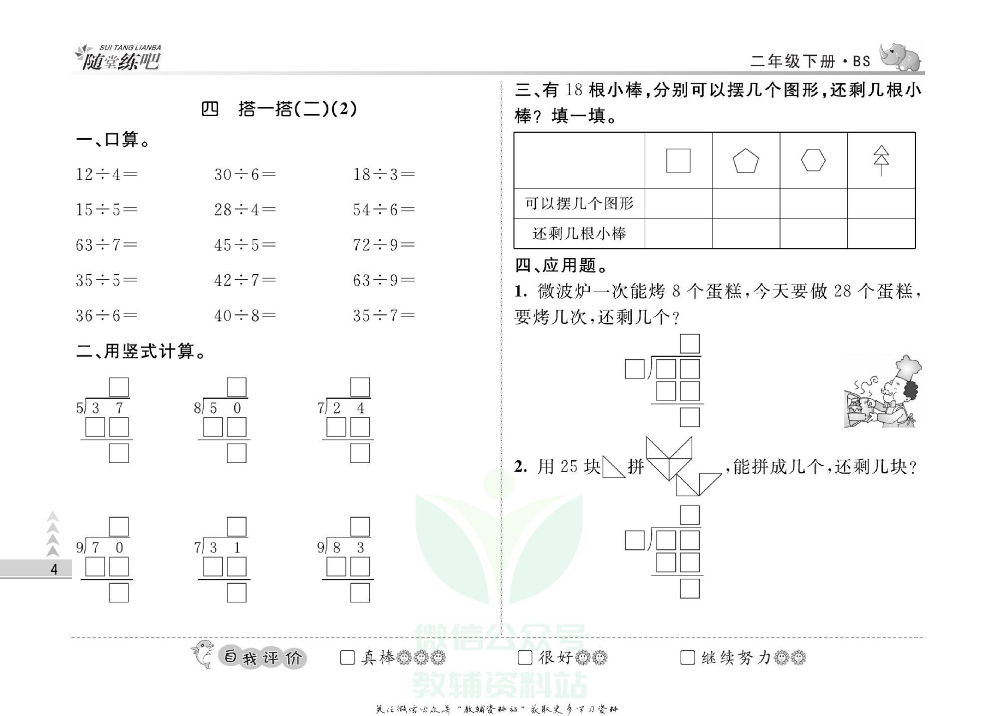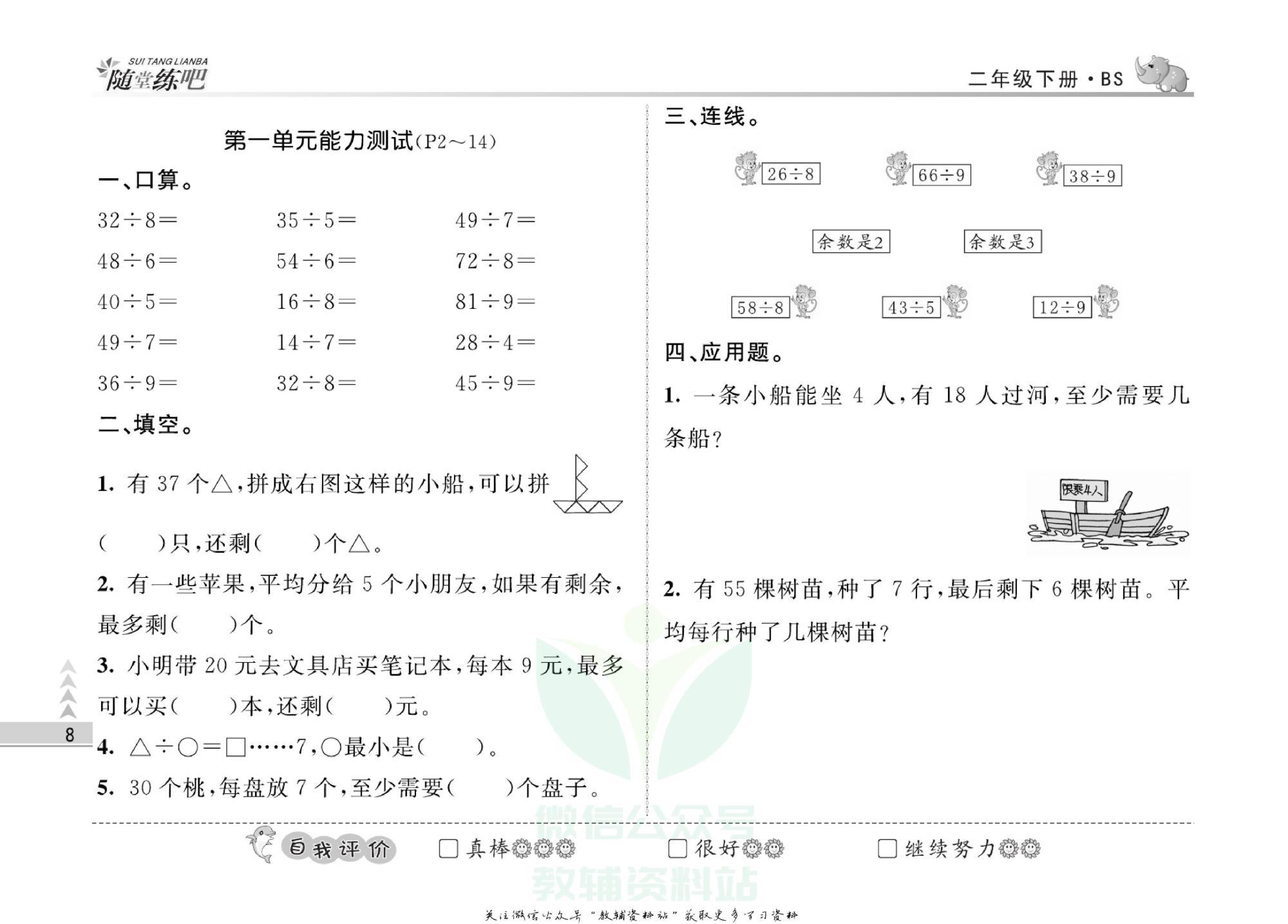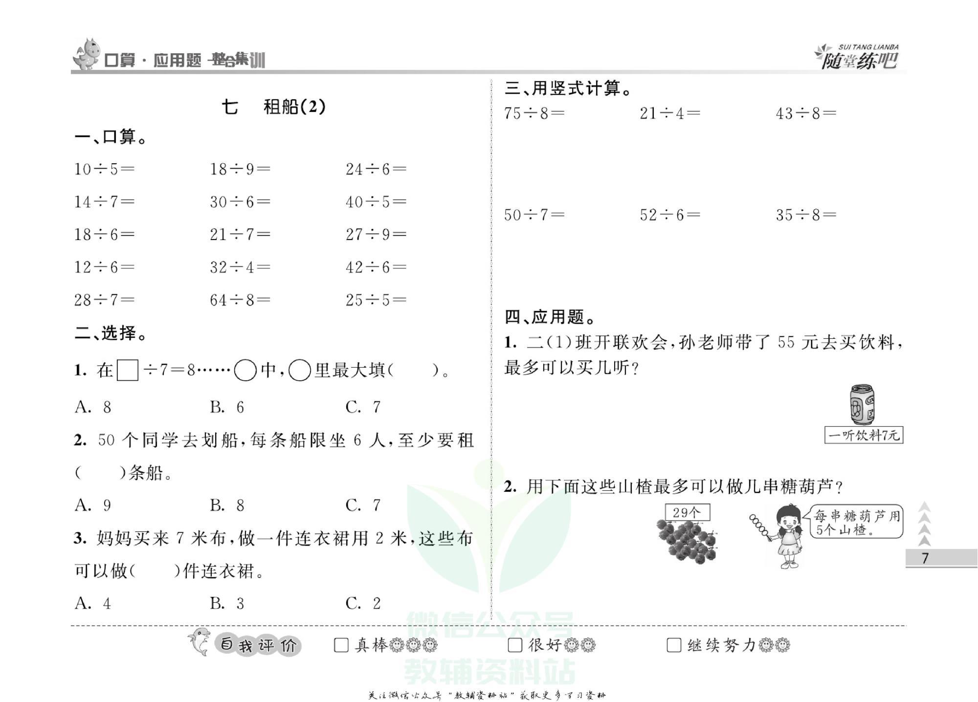 《口算应用题整合集训》二年级下册数学北师版PDF电子版下载