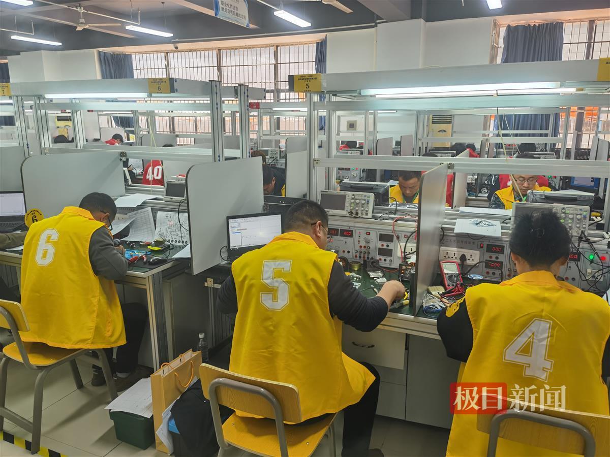 3月21日上午,极目新闻记者在现场了解到,电子电路装调与应用赛项共分为电子产品装配与调试、电路故障排除与应急电路板绘制等三个模块内容考核。