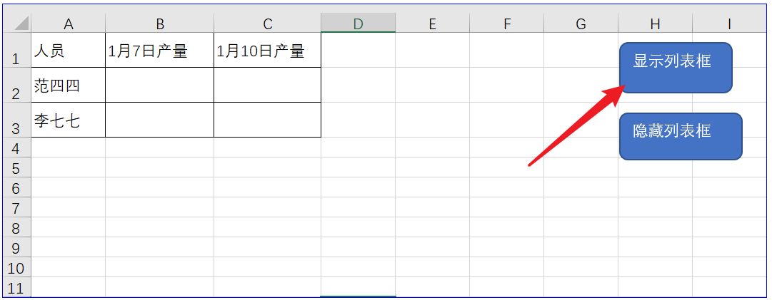 在上述工作表窗口点击显示列表框。效果如下: