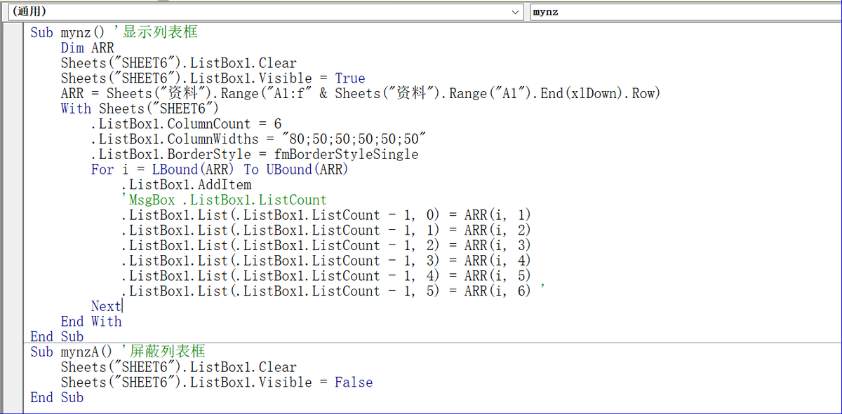 Sub mynzA() '屏蔽列表框