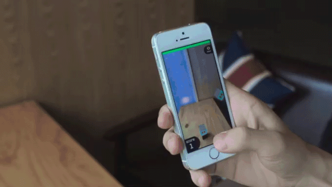 除了上面所说的「贪吃蛇」和「神庙逃亡」之外,它还内置了一个 AR 堆积木的小游戏,先让手机和积木进行扫描连接,然后就会在手机屏幕上出现 QCoo 的样子,之后会有一个一个的虚拟 QCoo 魔方要往上面「叠罗汉」,就和「堆房子」的小游戏一样。