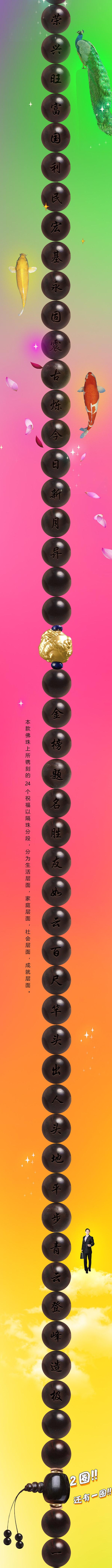 本款佛珠上所镌刻的24个祝福以隔珠分段,分为生活层面,家庭层面,社会层面,成就层面。
