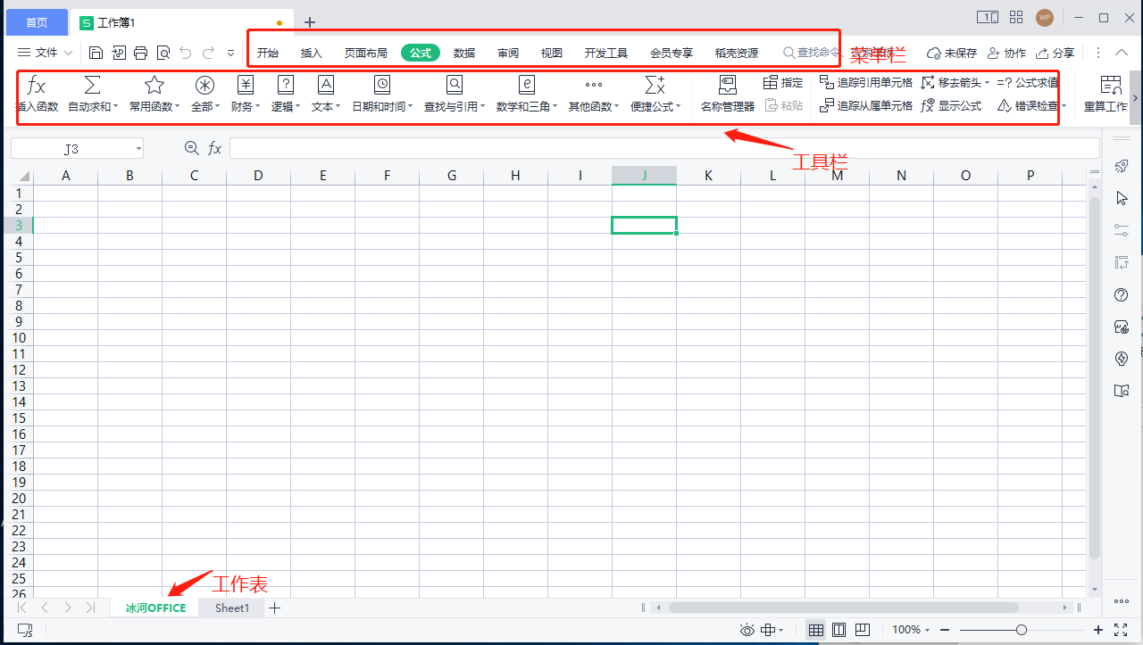 认识菜单栏、工具栏、工作表、工作簿