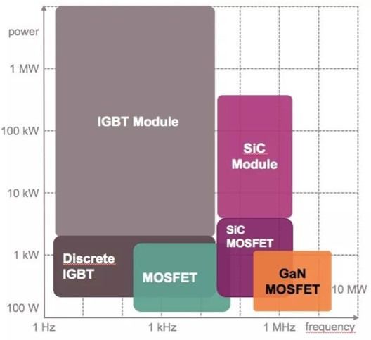 因为材料特性的差异,硅在高于1200V 的高电压、大功率具有优势,而GaN 制的产品更适合40~1200V 的应用,特别是在600V/3KW 能发挥最大优势。因此,在伺服器、马达驱动、UPS 等领域,GaN 可以挑战传统MOSFET 或IGBT 的地位。