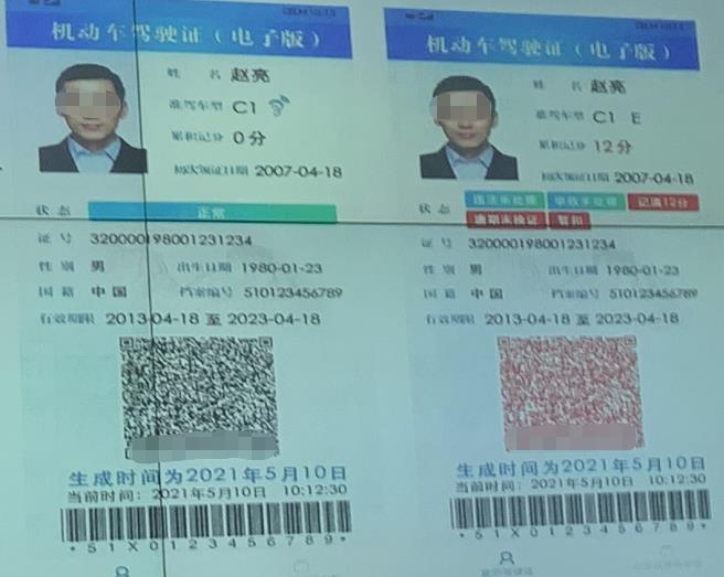 记者了解到,二维码内嵌信息项包含:证号、姓名、性别、国籍、出生日期、准驾车型、听力辅助条件、有效期限、初次领证日期、发证机关、累积记分、状态、记录(包括各准驾车型起始日期、校车准驾车型和起始日期)、高倍压缩照片、数字签名、生成时间。