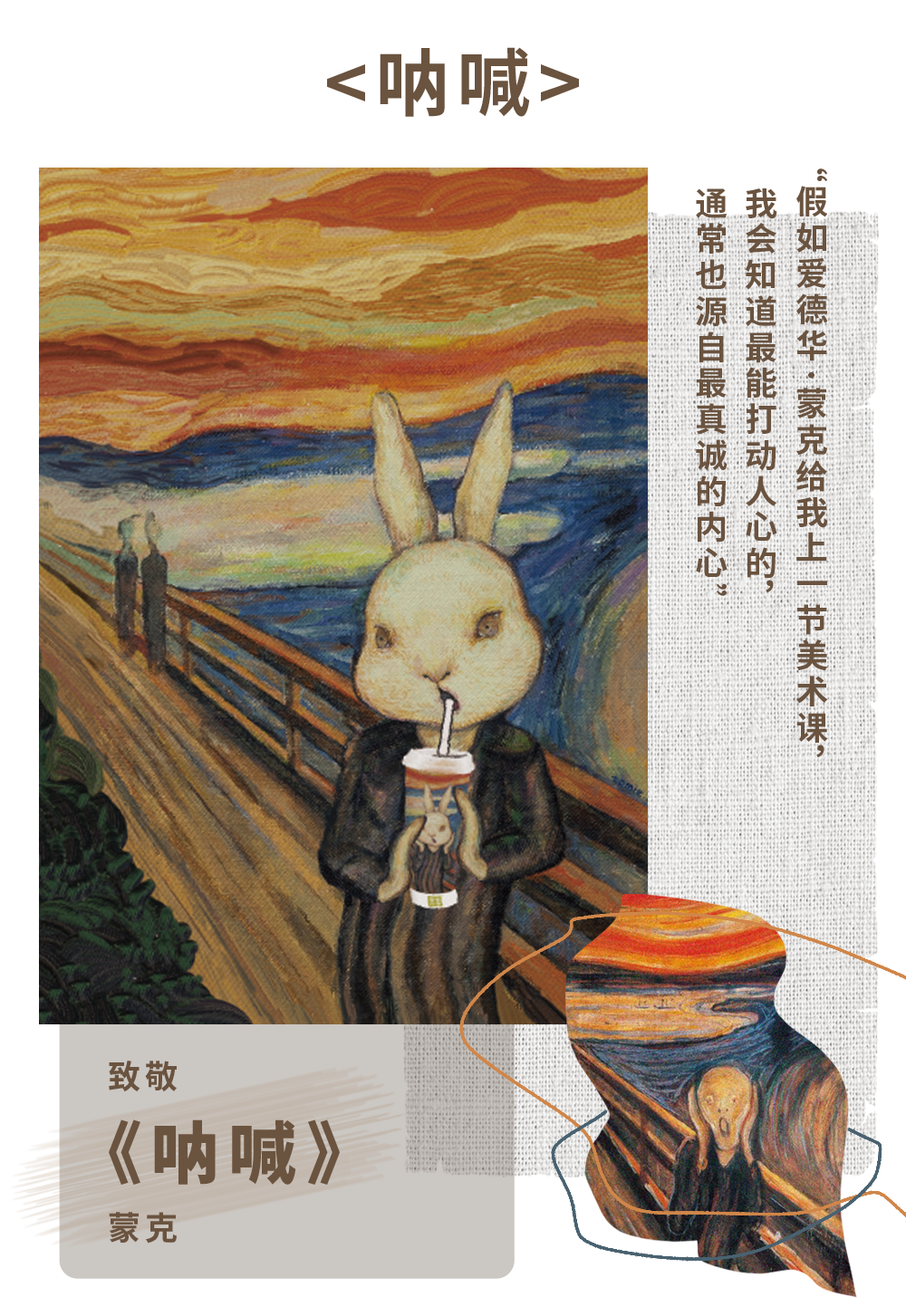 事实上又是奈雪在搞事情。奈雪的茶联名青年艺术家邓瑜再创作向世界名画致敬,6幅画作生动有趣,颜值吸睛,别出心裁的纸袋设计还能让消费者可以自由涂鸦。