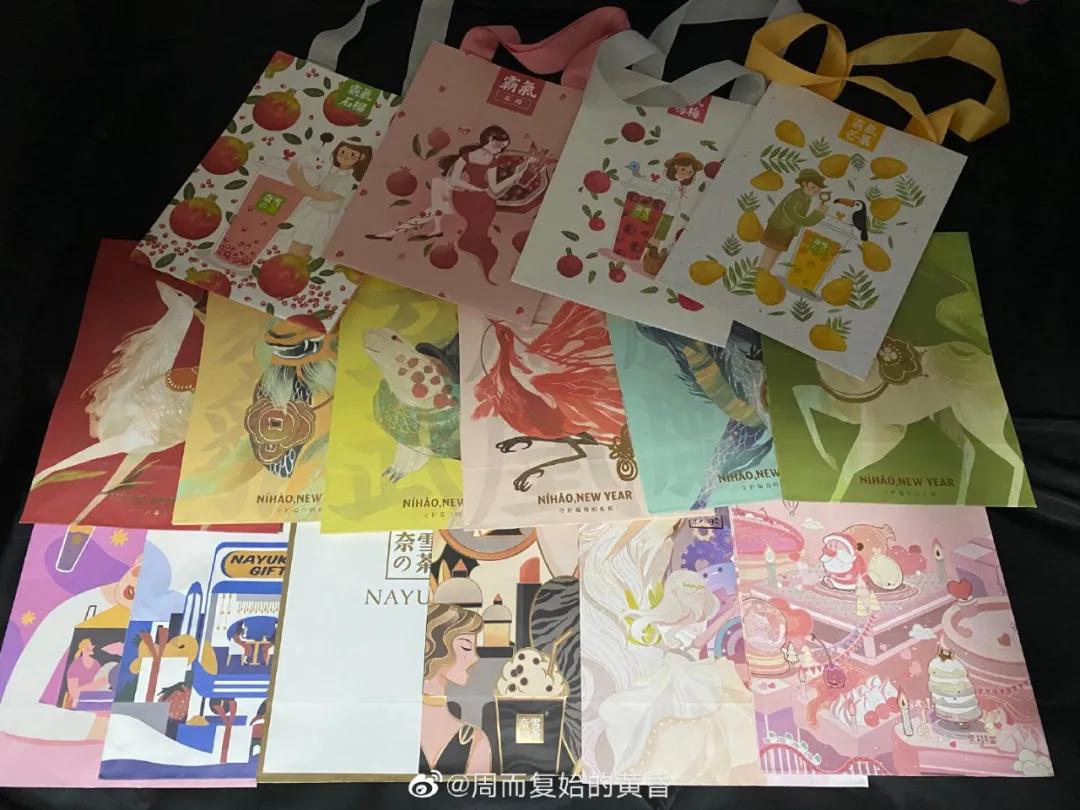 从2016年开始每次推出新品,奈雪都能把手提袋玩出不同的花样儿来,不断刷新消费者美感官审美,将颜值和设计理念推向新的高点。