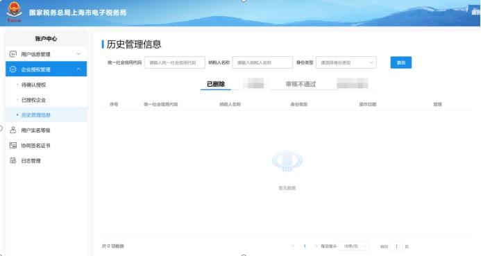 自然人通过此功能查看已删除、已退回、审核不通过的所有历史信息。信息过多时,可以清除记录。