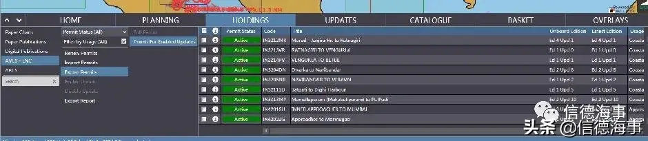 如果选择上面一项 fullpermit,HOLDINGS 里包含的所有 PERMIT 会被导出,最好不要把FULL PERMIT装进电子海图,因为所有的ECDIS要是把全世界的海图都装进去,相信会反应很慢,以至于导致死机