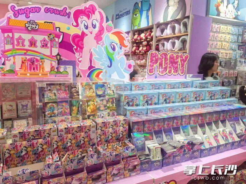 “哇!是我喜欢的‘紫悦’!”8月7日,在芙蓉区五一广场的一家名创优品店里,00后市民吴女士正从一个专属IP货架上精挑细选出几个不同系列的产品,迫不及待地拆开。“每次来这儿逛街都会来买几包小马宝莉的卡,小时候看的动画片,到现在也很喜欢,所以花钱收集这些卡片,会感到很开心。”吴女士如是说。