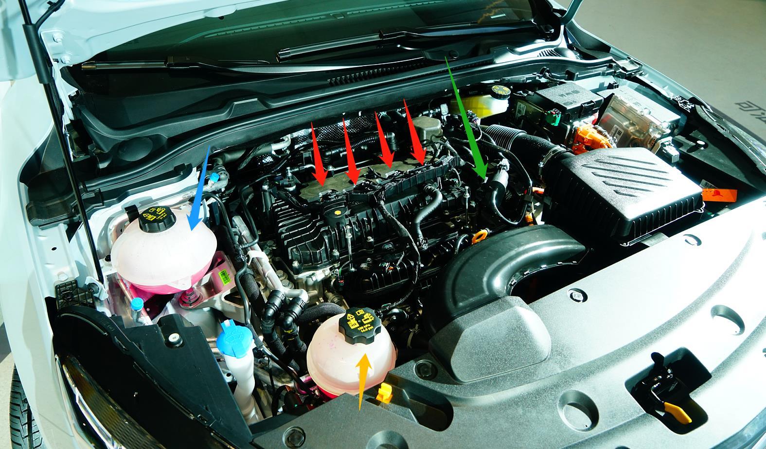 蓝色箭头:发动机、电机和电控系统高温散热补液壶