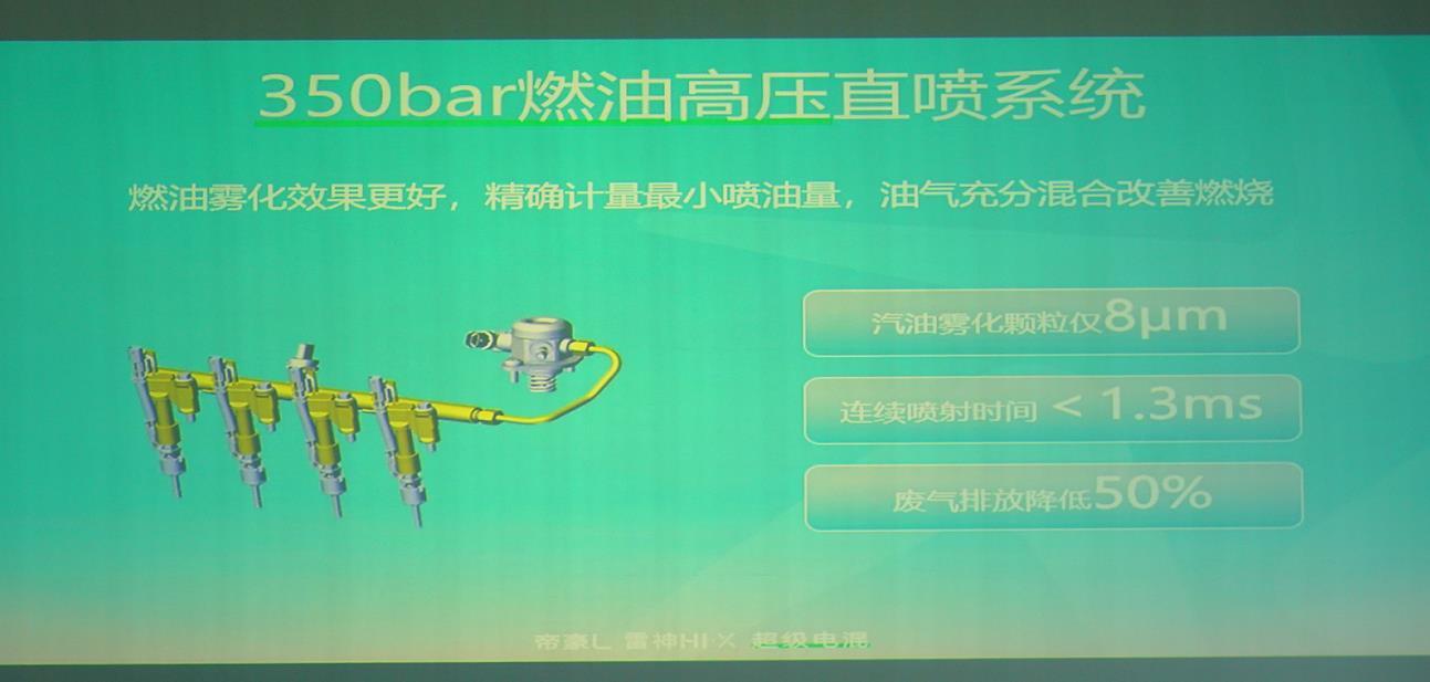 帝豪L雷神Hi·X混动版采用全新1.5TD涡轮增压缸内直喷发动机,最大输出功率133千瓦,最大扭矩290牛米。值得一提的是,该四缸发动机采用350Bar燃油高压直喷系统,通过超高系统压力+小脉宽燃油量闭环控制+精准喷射,让燃油雾化效果更好,油气充分混合改善燃烧。