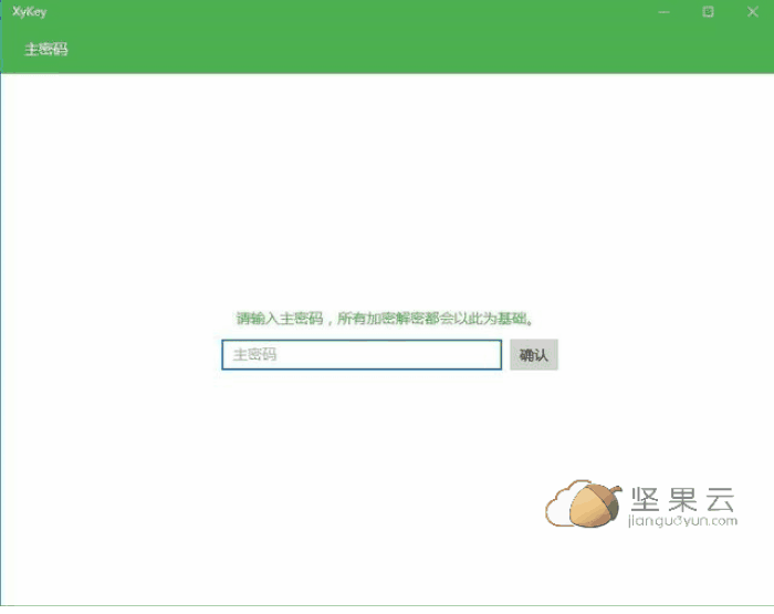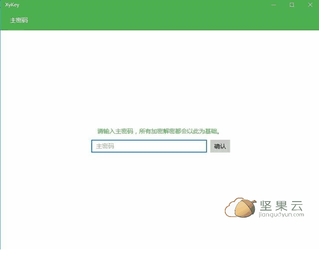 安装 XyKey 后,只需要设置一个主密码即可,没有账号的设置,密码的记录由手动输入操作完成。