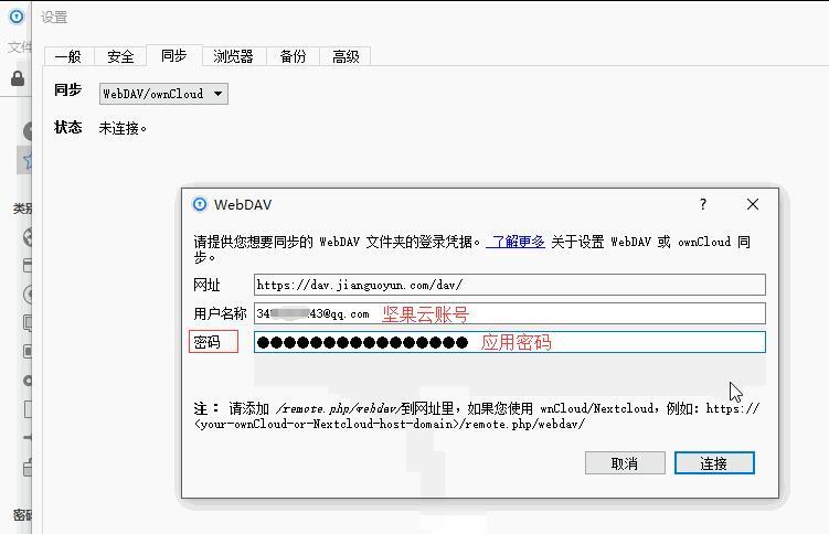 如何在 Enpass 中设置 webdav 连接到坚果云?