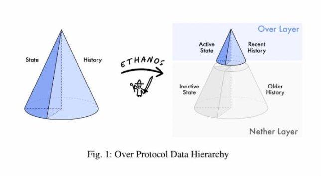 Over Protocol 采用 Ethanos 技术来实现其数据层次结构,将数据组织成三个主要层次:Over 层、Nether 层和 External 层。其中,Over 层保存了区块链操作的关键数据,而 Nether 层存储了增强共识但并非关键的辅助数据。