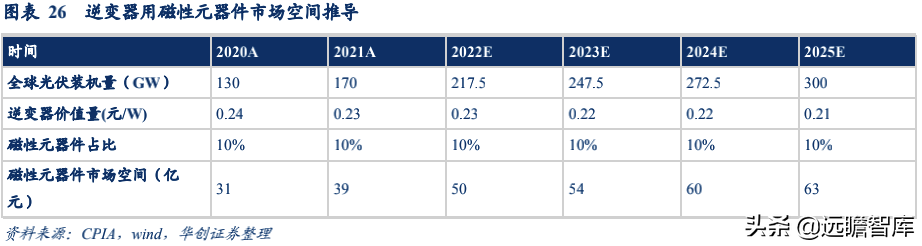(二)预计 25 年逆变器磁性元器件市场空间超百亿
