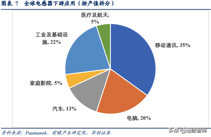从应用领域来看,移动终端是电感器最大的应用市场,占全球电感器产值比例达 35%。此外,汽车、工业、家电、通信设备、计算机等均为电感器的主要应用市场。未来几年汽车、工业、通信市场的需求将成为电感器市场增长的主要动力。