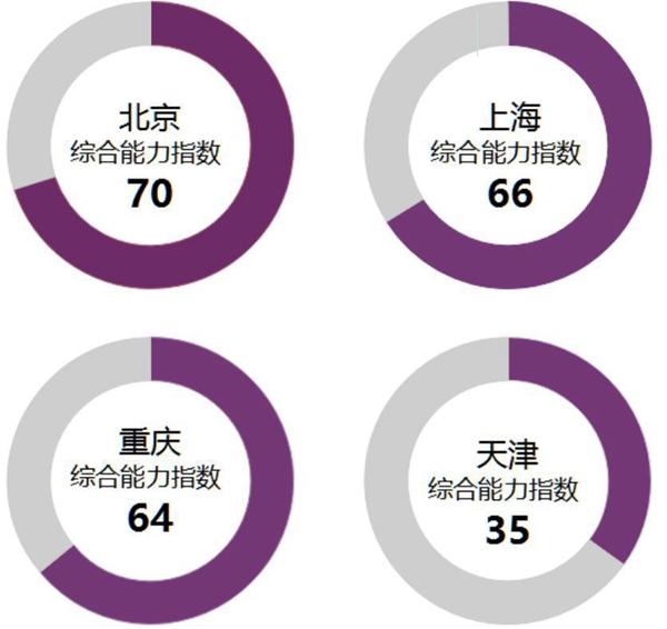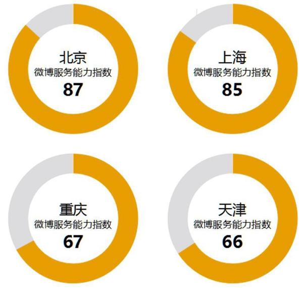 综合指数是政府网站、“两微一端”四个渠道服务能力的综合测评指标。在直辖市中,北京、上海、重庆的综合能力指数均超过直辖市的平均水平,北京排名第一。