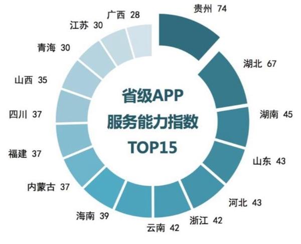 数据显示,贵州政务APP服务能力指数为74,位列第一,湖北省、湖南省分别位列第二、三。其中,贵州省政务APP因其界面友好、类目清晰、操作便捷,信息服务时效性强和办事效率高的特点,备受用户好评。