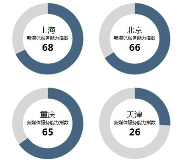 政务“新媒体”服务能力指数是我国各级政府信息传播与服务提供的新渠道——“两微一端”建设与应用情况的综合衡量指标。“新媒体”服务能力指数越高,代表政府应用新媒体提供政府服务的效果越好。就四直辖市的“新媒体”服务能力指数而言,上海、北京、重庆三市的得分较接近,而天津市受到政务APP得分的影响,与前者有一定差距。