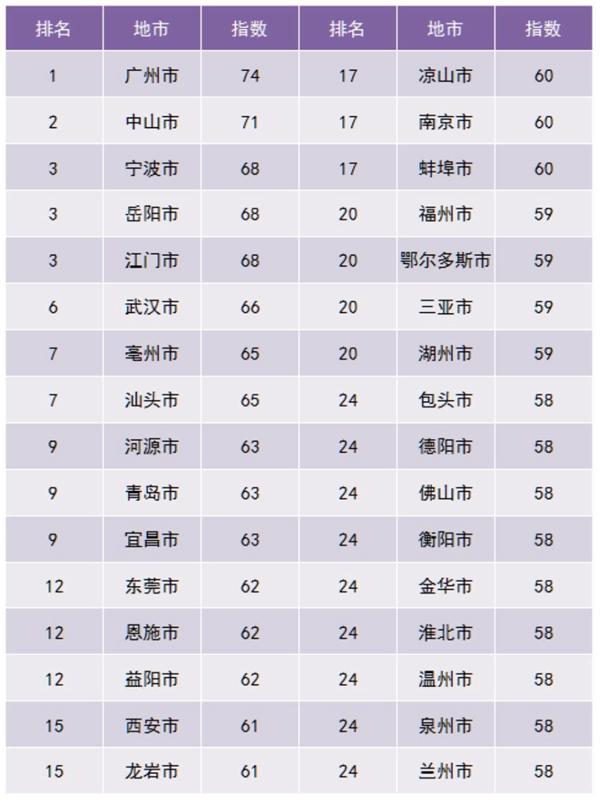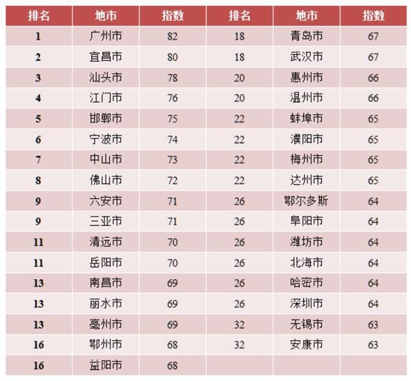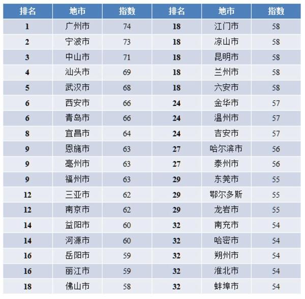 在地级市中,广州、宜昌、汕头三市位列三甲。简单分析发现,甘肃省、浙江省、吉林省所辖的地级市,除浙江省的宁波市、丽水市外,均未进入地级市“双微”服务能力指数的前20。相反,省级“双微”服务能力指数并未进入前15名的广东省却有多个地级市的“双微”服务能力指数名列前茅,其中,广东省有五市跻身前10,广州市、汕头市分列第一、第三位。这也说明,省级政府与其下属地市政府“双微”服务能力建设上的步调并不完全一致。