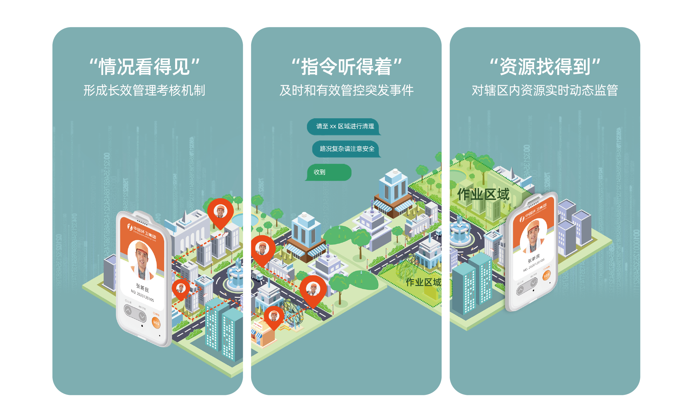 外勤作业人员很多时候会遇到突发情况,以环卫工人为例,他们作业环境复杂,一旦遭遇车祸、中暑、低血糖晕倒、路人谩骂殴打等事件时,以往只能被动等待。而配备了电子工牌后,只需要一键紧急求助,管理人员结合实时位置信息可以第一时间安排人员赶赴现场,最大程度减少事件的恶化。