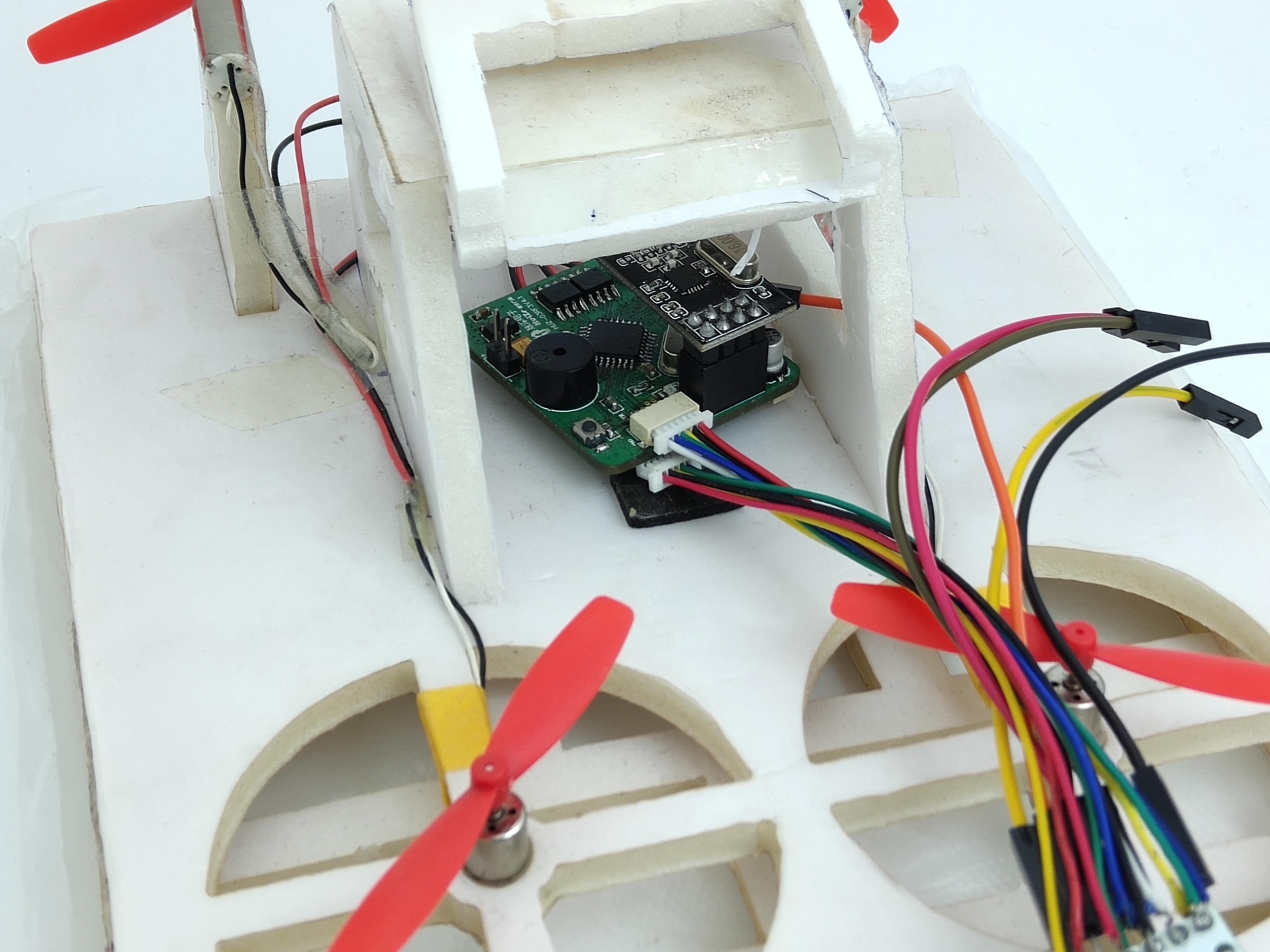 整个机身一共有四个电机,两个负责推进两个负责起升,这样刚好用光了我设计板子上面所有的电机接口,后续还想加什么功能的话也有多余的端口来使用。