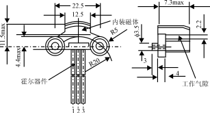 用磁场作为被传感物体的运动和位置信息载体时,一般采用永久磁钢来产生工作磁场。例如,用一个5×4×2.5(mm3)的钕铁硼Ⅱ号磁钢,就可在它的磁极表面上得到约2300高斯的磁感应强度。在空气隙中,磁感应强度会随距离增加而迅速下降。为保证霍尔器件,尤其是霍尔开关器件的可靠工作,在应用中要考虑有效工作气隙的长度。在计算总有效工作气隙时,应从霍尔片表面算起。在封装好的霍尔电路中,霍尔片的深度在产品手册中会给出。